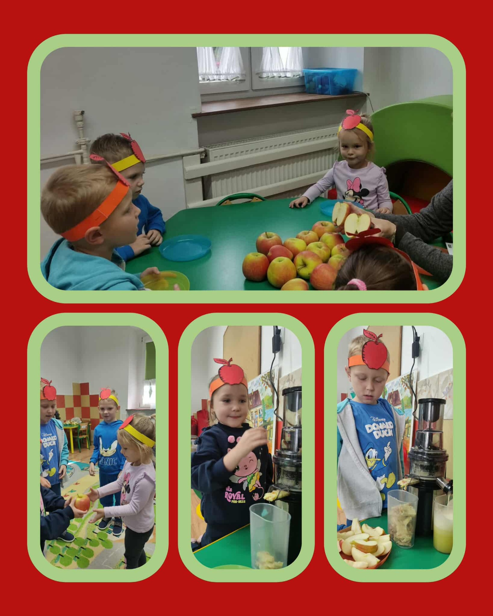 Dzisiaj wyruszyliśmy w niezwykłą podróż, aby poznać tajemnice jabłka. Dzieci odkrywały jego budowę, słuchały opowiadania i oglądały film edukacyjny „Od kwiatuszka do jabłuszka”. Były zabawy ruchowe, prace plastyczne i wspólne przygotowanie świeżego soku z jabłek, który wszystkim bardzo smakował.