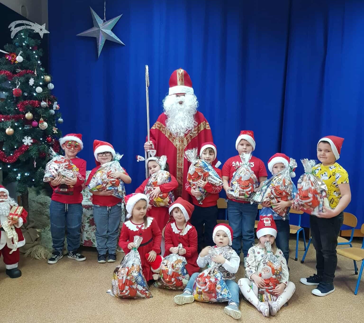 Nasze przedszkole odwiedził wyjątkowy gość – Mikołaj! Było dużo uśmiechów, radości i świątecznej magii. Dzieci z dumą prezentowały swoje piosenki i wierszyki, a Mikołaj obdarował wszystkich pięknymi upominkami. To był wspaniały dzień, panowała prawdziwa świąteczna atmosfera.