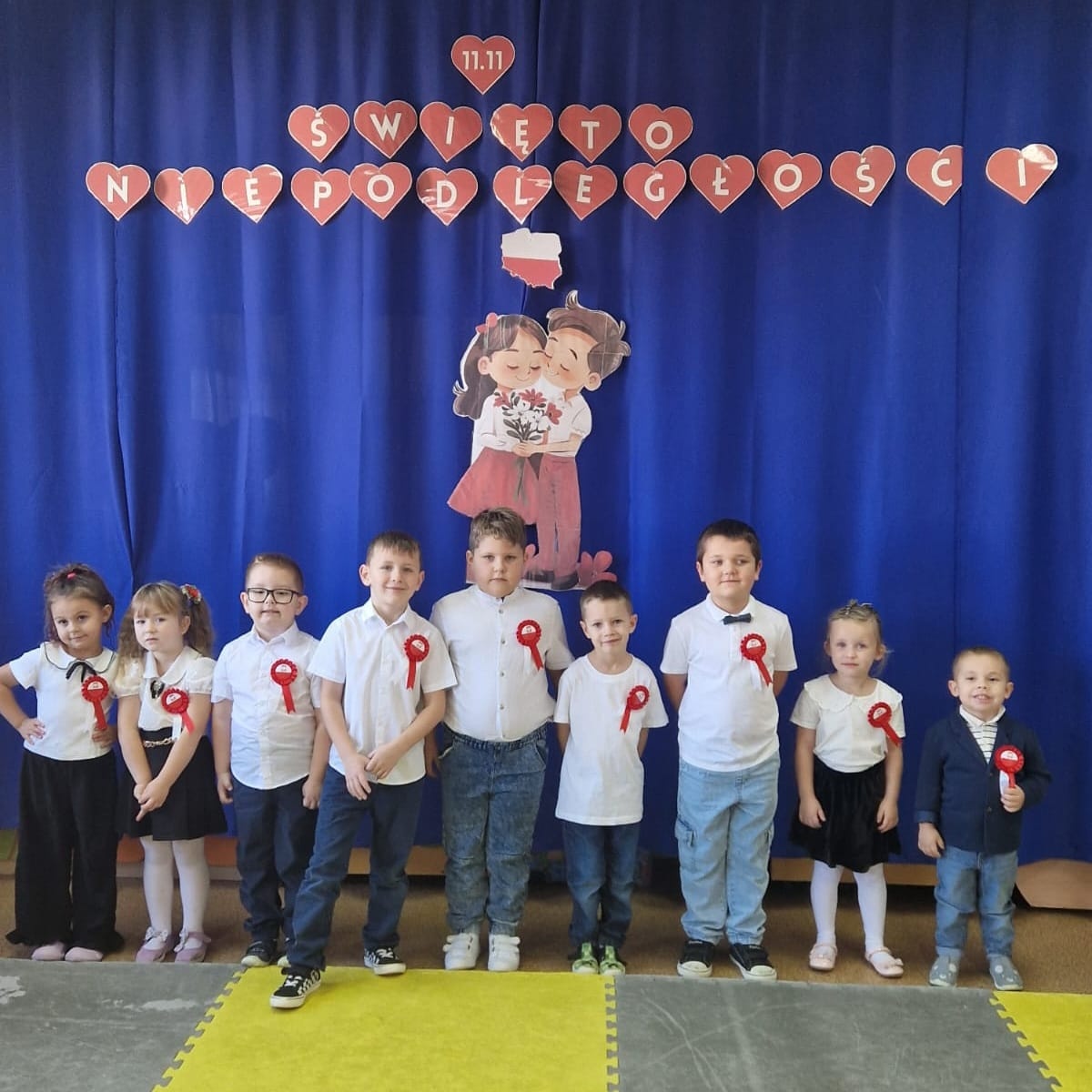 W przedszkolu odbyło się uroczyste odśpiewanie Hymnu Polski. Następnie przedszkolaki wybrały się na spacer po okolicy, podczas którego podziwiały wywieszone flagi państwowe. Dzieci z zainteresowaniem obserwowały symbole narodowe oraz z dumą opowiadały o barwach ojczystych. Atmosfera była radosna i pełna patriotycznego ducha.